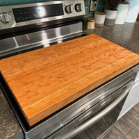 Beautiful Custom Cherry Edge Grain Cutting Boards. They also work as stove top covers.