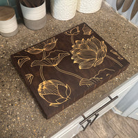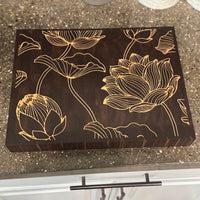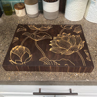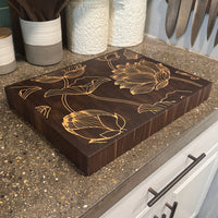 These are solid Walnut End Grain Cutting Boards with a Maple inlay. Each board is unique in its color and detailing in the wood. They are 2" thick.