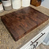 These are solid Walnut End Grain Cutting Boards with a Maple inlay. Each board is unique in its color and detailing in the wood. They are 2" thick.